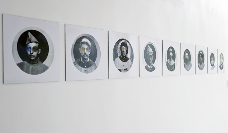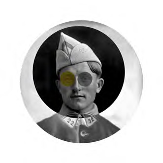 Plaques photographiques (début du 20 ème siècle) numérisées, retravaillées. Portraits de neuf soldats extraits de la série D’un regard, l’autre.