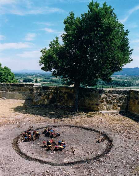 Buisson coupé, peinture, eau (arrosage journalier du cercle)
