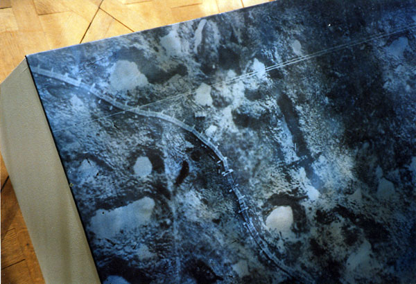 Résinotypes sur papier marouflés sur bois, retable en hêtre, 230 x 300 x 12 cm