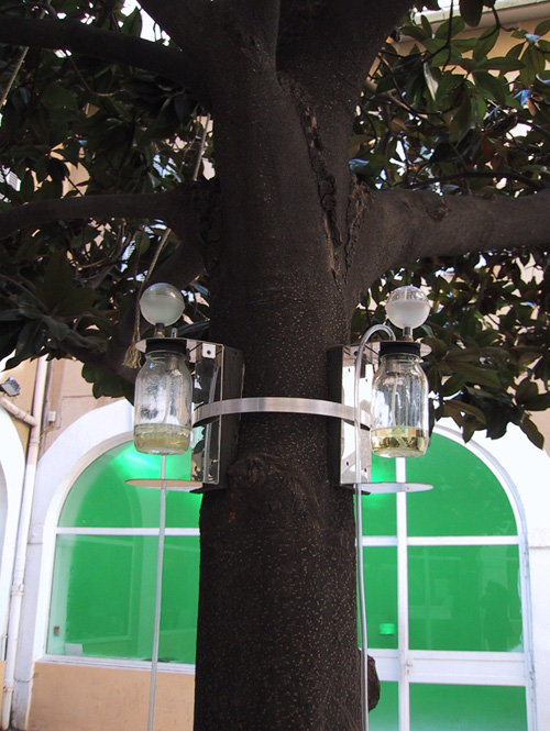 Arbre muni de prothèses dégageant de la phéromone synthétique. Ce signal chimique, d’une odeur que l’on perçoit inconsciemment, provoque l’excitation et suscite le désir sexuel.