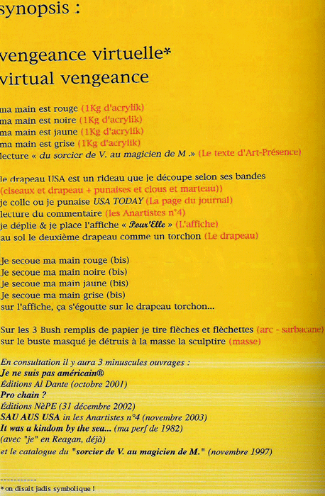 Synopsis de la performance, image du livre