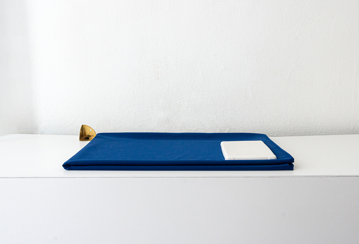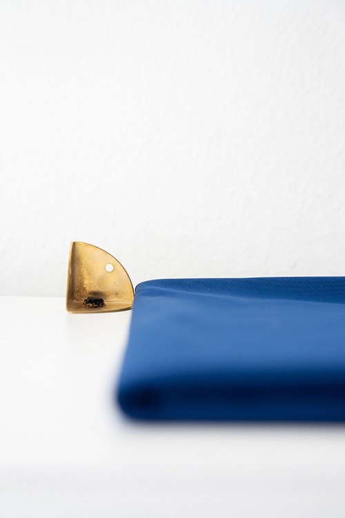 Blue fabric, brass, beetle, plaster cast