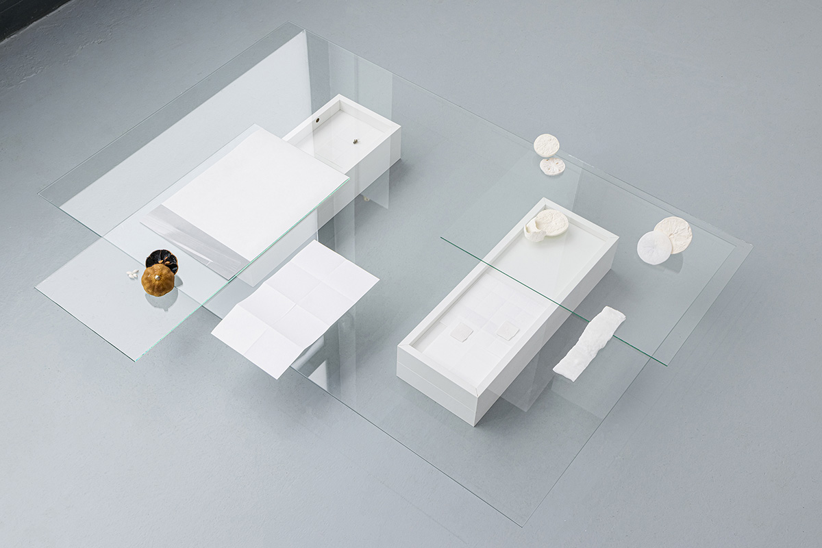 Inspired by animist masks that unfold multiple interiorities on a single plane, this particular sculpture deploys various surfaces/envelopes, each defining a distinct subjectivity.