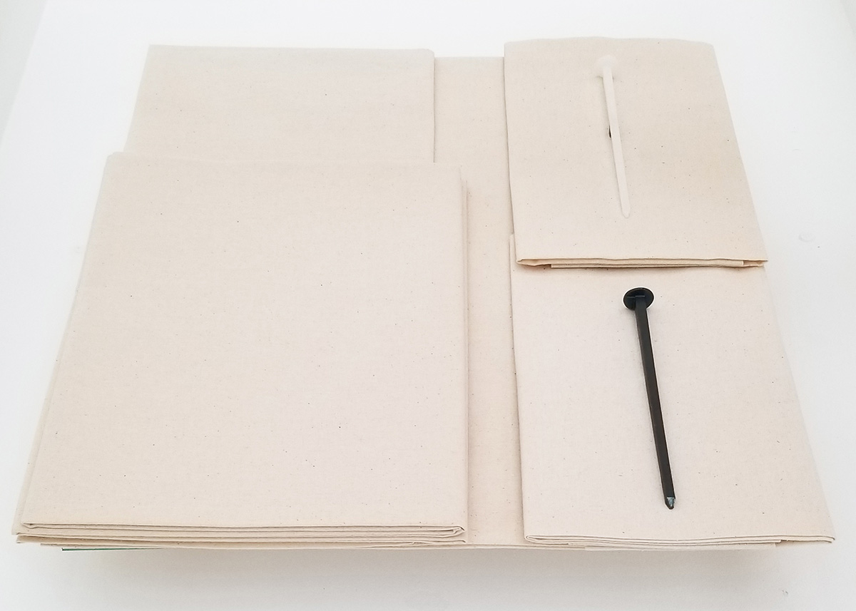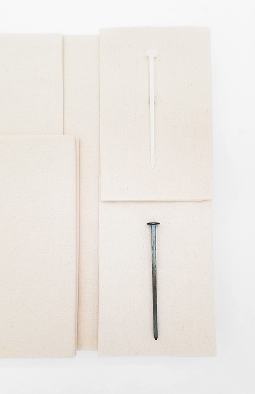 Clou en métal (clou de fondation), clou en cire, toile de patron, support en verre