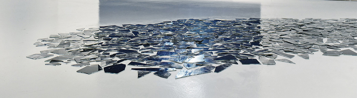 The elements on the ground show a starry sky whose image has been shattered, remaining silent after the fall. A sky that seemed unreachable, now descended to Earth and sharpened.