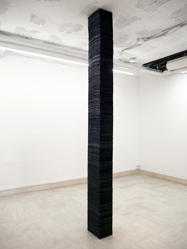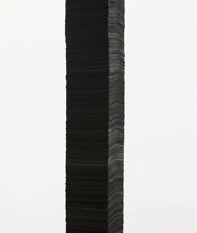 Crossing the space from floor to ceiling, the 57,000 sheets of paper give shape to the unrepresented : like a coring of the space, the infinity of sheets, like an infinity of parallel infra-thin planes, suggests the possibility of a multitude of other potential dimensions.