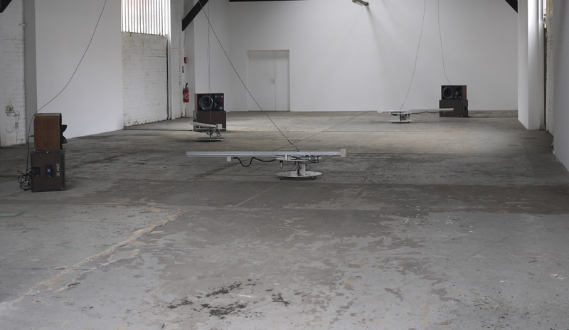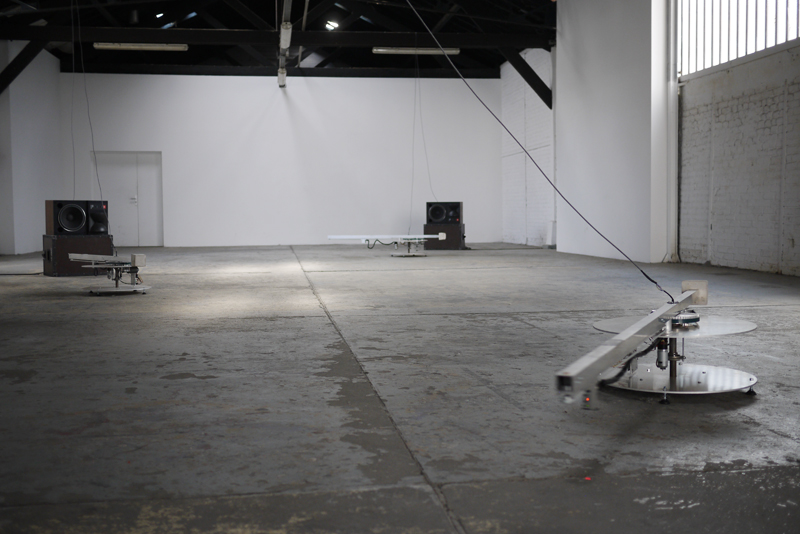 Ground Noise est un projet sonore spécifiquement conçu pour l’espace d’exposition des Instants Chavirés. La dalle usée de l’ancienne brasserie Bouchoule est investie comme matière première d’un dispositif de lecture inspiré de platines vinyles. L’installation propose une topographie sonore et active des sols de la brasserie en se fondant sur la lecture en direct des micro-reliefs du sol et leur sonification par 3 platines équipés de distance mètre laser. L’installation concrétise des problématiques d’écriture, de hasard et de support. L’érosion du sol est envisagée comme une forme d’écriture dans la matière, figurant dans les reliefs la partition d’un paysage sonore qui se déploie dans l’espace d’exposition des Instants Chavirés.