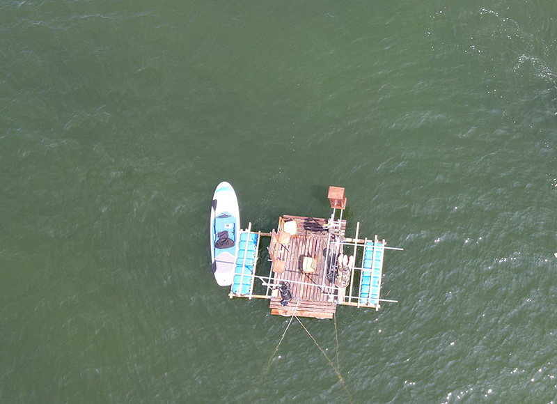 Mon parti pris dans ce contexte était de constituer un radeau depuis la base nautique de Miramas pour aller à la rencontre de cette île légendaire situé sur l’étang de Berre. Mon intuition à travers cette légende était de partir du postulat que l’important dans le voyage n’est pas la destination mais bien le voyage lui-même. Que le radeau qu’on construit pour la trouver, devient cette île fantasmée. Et de cette ile flottante, s’interroger sur soi, son identité, sa propre quête.
