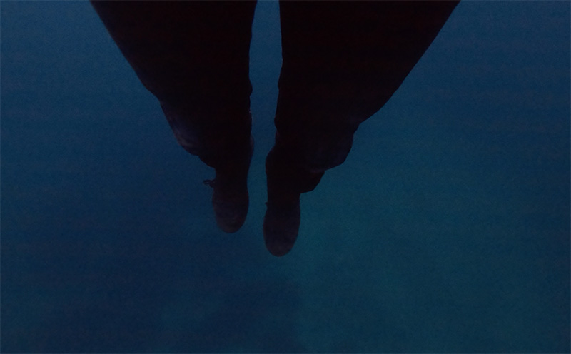 Les jambes nues ou vétus sont comme suspendues, elles sont droites, elles vacillent légèrement au gré de la houle.