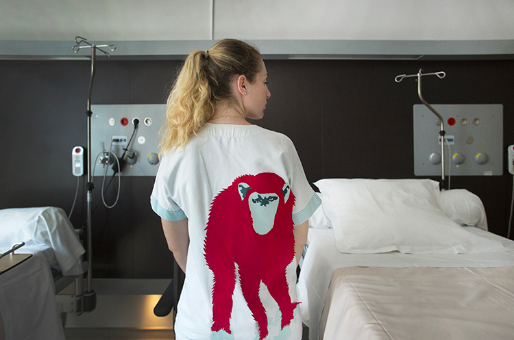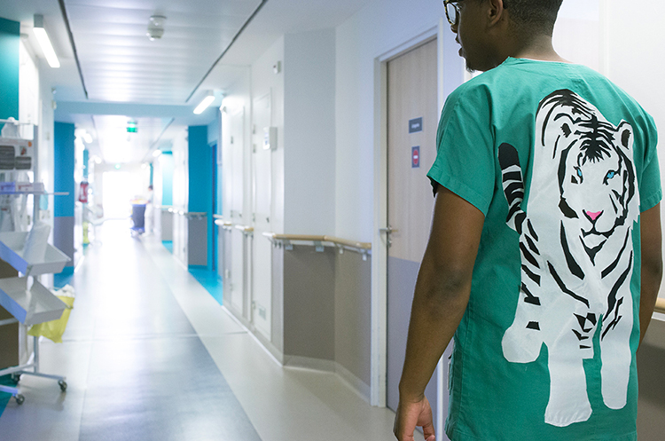 En sortant du bloc, je pense bien sûr au white cube, à cet espace dont on n’échappe pas, qu’on expose dedans ou dehors. J’essaie des trucs dans les aérogares, les stades, les stations de métro ; j’ai une tendresse particulière pour les lieux qui nous rassemblent malgré nous. Je passerai des heures à la CPAM, à la CAF, dans les zones de transit, pour dessiner dans ces espaces normés, ensemble des modules d’un grand système. Y a-t-il un espace plus public que l’hôpital? Peut-être, mais celui-ci en tous cas, on y fera tous un saut.