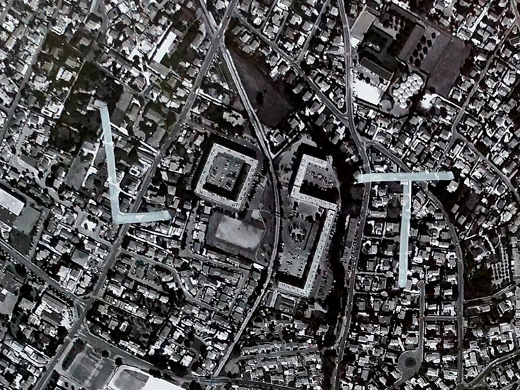 Vues du ciel, les cités de La Chaume et de Florida Parc à Marignane forment un O et un S.