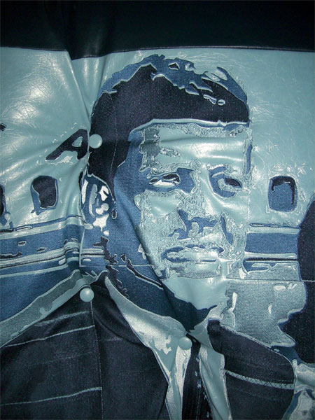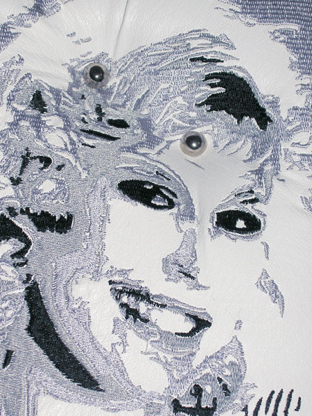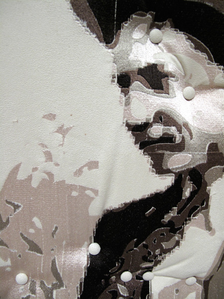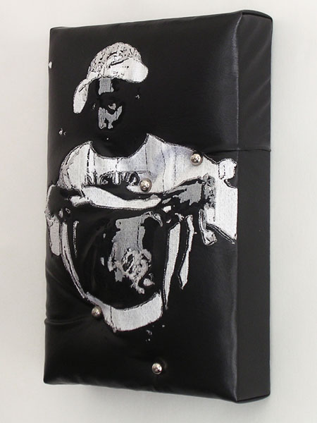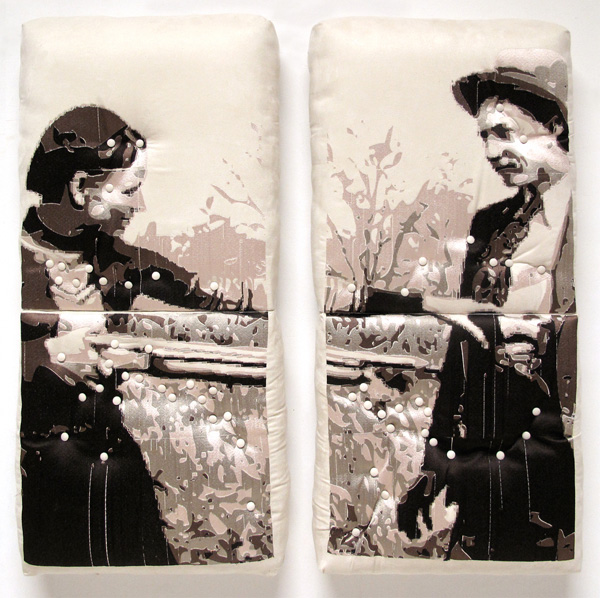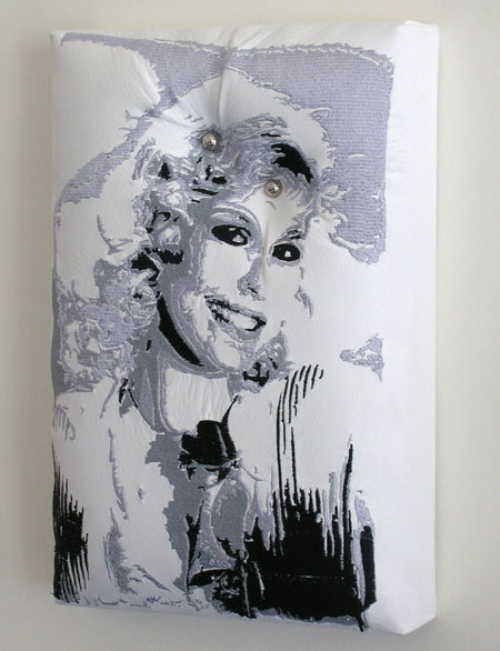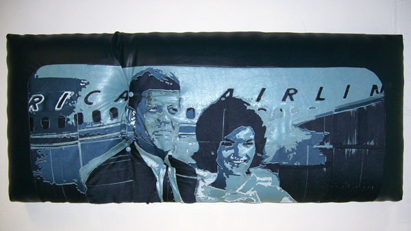 Broderie sur skaï, capitons, mousse, bois, 70 x 167 x 15 cm