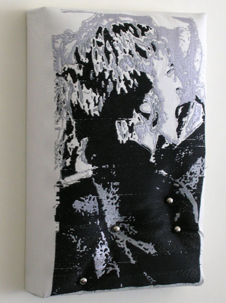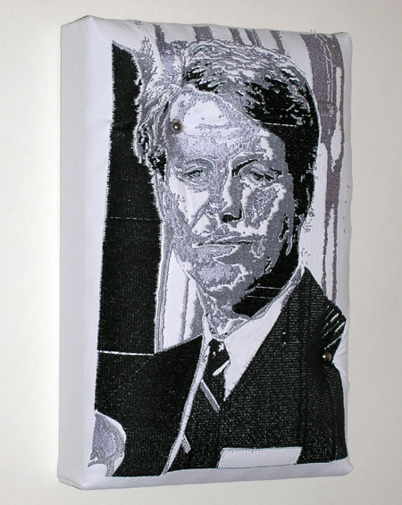 Broderie sur tissu enduit, capitons, mousse, bois, 32,5 x 21 x 7 cm