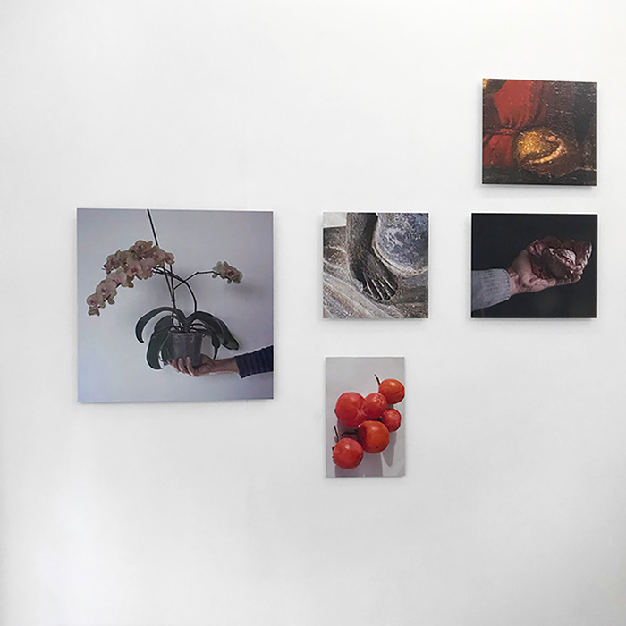 « Je présente un ensemble de photographies et d’ustensiles de cuisine réunis sous le titre Porté. Pour les photographies, le titre Porté est suivi d’un verbe précisant la nature du geste : tendre, exposer, lover, etc. Porté fait référence au vocabulaire de la danse et de l’acrobatie : c’est l’action qui soulève et porte un partenaire, où les mains sont la clé de voûte de la réussite du mouvement. Les photographies du cycle Porté figurent un geste précis qui témoigne d’une attention, d’une présence intense à l’objet que je photographie, à sa forme et à son existence.