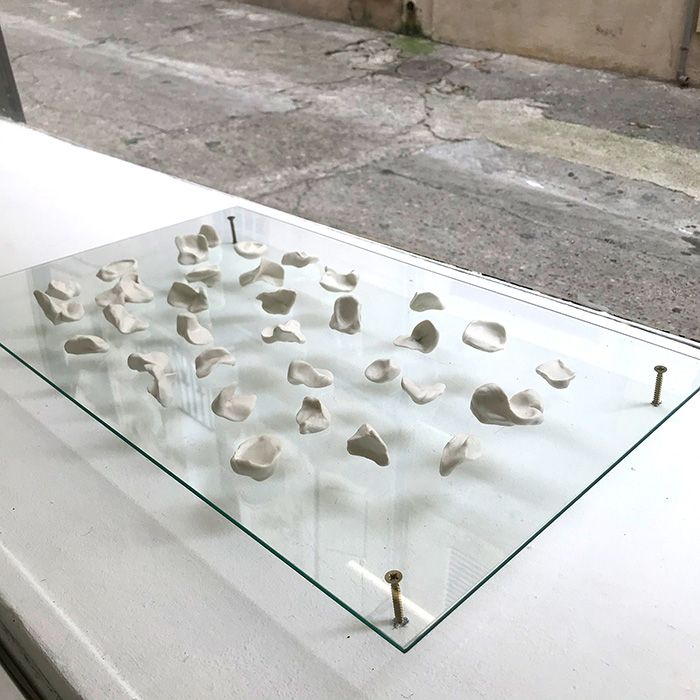 | Composition pour la vitrine de la galerie, Mies, 34 pièces en porcelaine, 2016 |