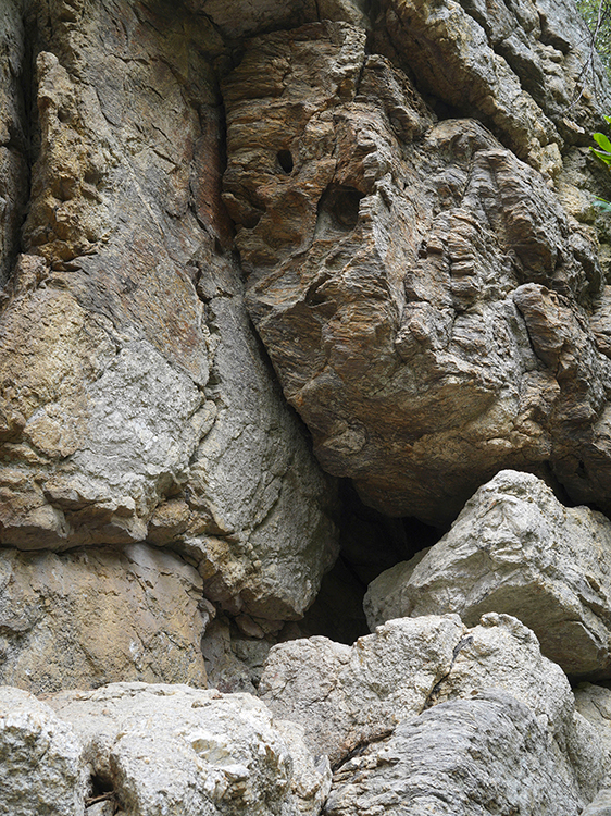 C’est l’étroite zone de contact entre un corps et la paroi qui permet d’approcher le rocher autrement que par la vue. Elle rend palpable une observation de la vie du rocher, de sa surface, de la végétation qui y loge, des dépôts minéralogiques, d’une vie animale qui vit dans sa proximité. Je cherche des porosités entre la peau et celui du rocher, j’aime le vivre comme une entité avec son caractère, ses humeurs et sa vie intérieure. |