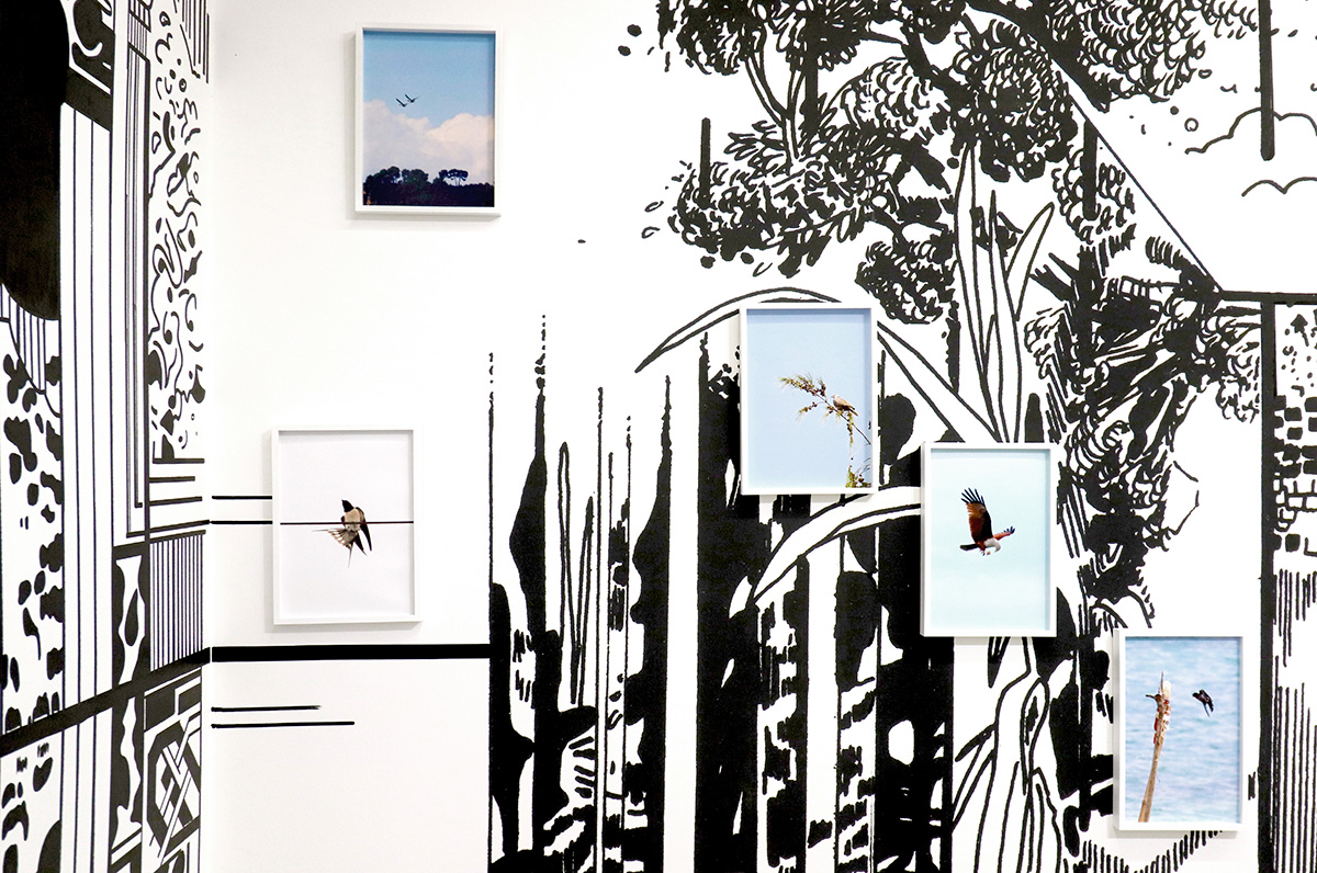 L’exposition I See a Bird / Je vois un oiseau est le lieu de multiples récits, d’une succession de « voyages dessinés » où se confondent les paysages en mutation, réels ou fictifs. Reliés les uns aux autres dans un environnement fluide et sans frontières, les oiseaux y sont nos guides. Libres et autonomes, ils incarnent les problématiques de la ligne, de la trajectoire, de l’envol, de la pratique du monde et du paysage qui traversent l’œuvre de Chourouk Hriech. Inspirée par le comportement de ces migrateurs, l’artiste explore cette figure comme un témoin de notre propre rapport à notre environnement et un indicateur de la crise écologique, notamment à travers la disparition de certaines espèces.