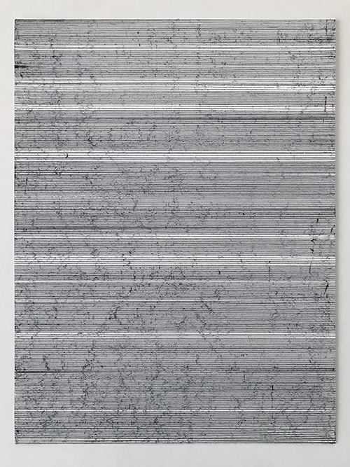Une ligne est tracée à la règle quasiment tous les 1 mm. À vue d’œil.