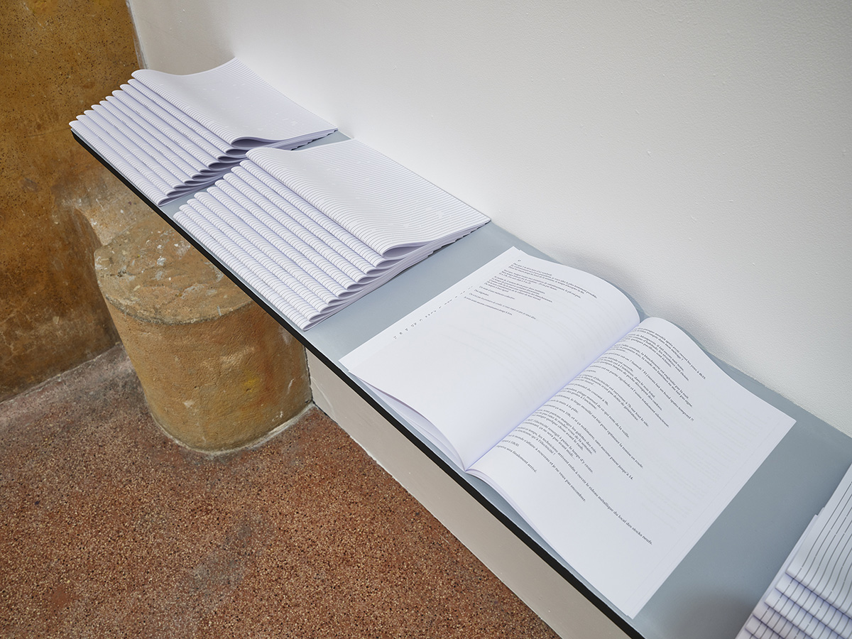 Enfin, au revers de la première cellule panoptique fermée à double tour induisant la surveillance généralisée de Percée en sud, coulez, la seconde cellule d’isolement, dégondée de sa porte capitonnée, élargie l’espace aux visiteurs de l’exposition comme une invitation à devenir lecteurs de La danse des blues, écrit de Lina Jabbour sur l’expérience de ses 25 jours de résidence à la blanchisserie.