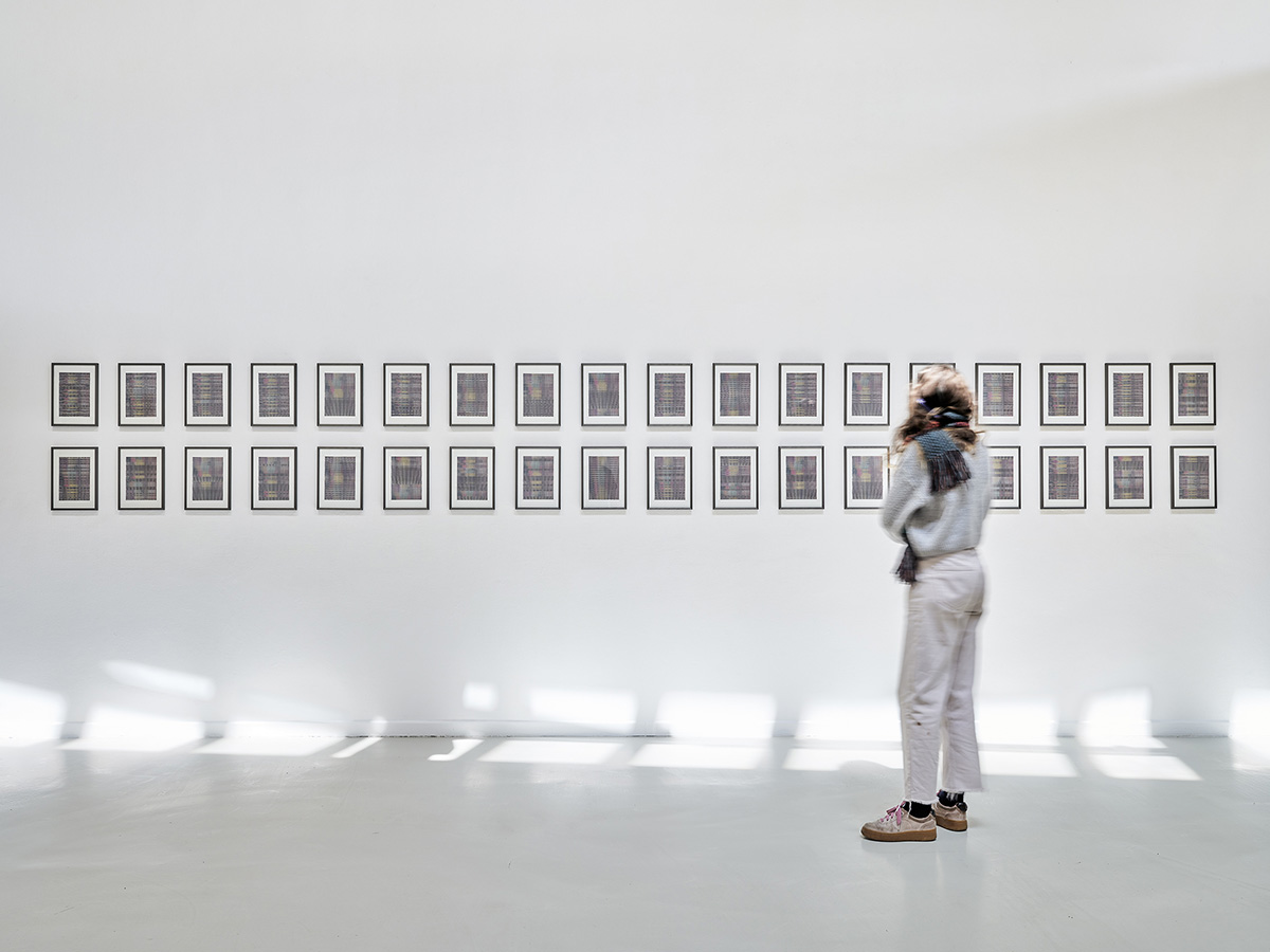 La pratique artistique de Lina Jabbour s’articule autour du point, de la ligne, de la découpe, du prélèvement, du remplissage, dans une répétition de gestes déclinant le dessin sur différents supports et surfaces. Plus largement, son travail entremêle l’usage des systèmes binaires communs du type de la mécanique artisanale des cartons perforés des métiers à tisser à l’imagerie associée à l’informatique et au numérique. Les notions de point de vue, des rapports d’échelles font alors apparaître des motifs floutés, grésillés, provoquant l’illusion d’un mouvement à la recherche d’une complétude échappant sans cesse au regard.