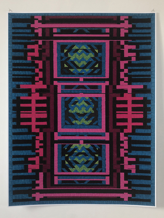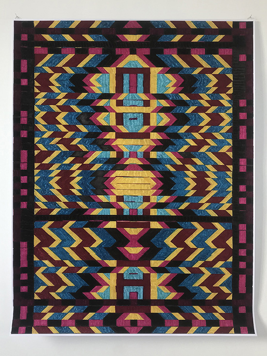 Série en cours pensée dans une perspective de collaboration avec un•e tisserand•e, feutre à alcool sur épreuves pigmentaires jet d’encre, 90,5 x 68 cm
