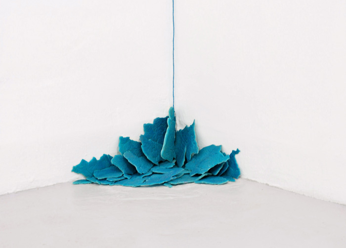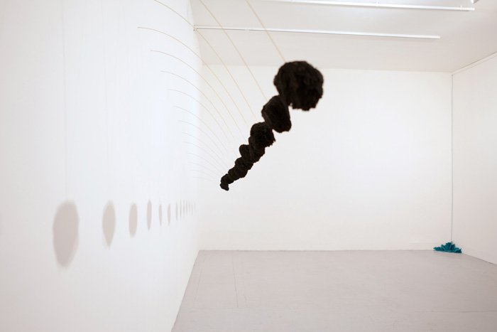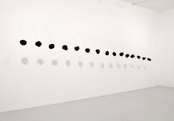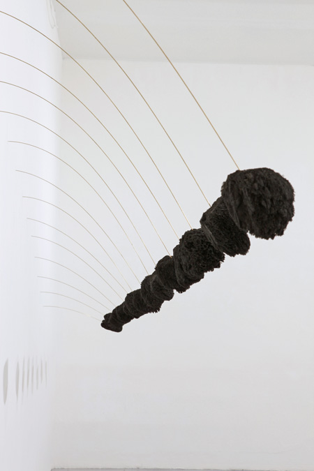 Éponges naturelles, encre de chine, tiges souder, 230 x 530 x 80 cm