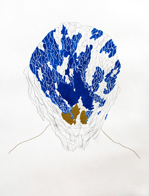 Bleu de méthylène, crayon et encre sur papier, 70 x 50 cm