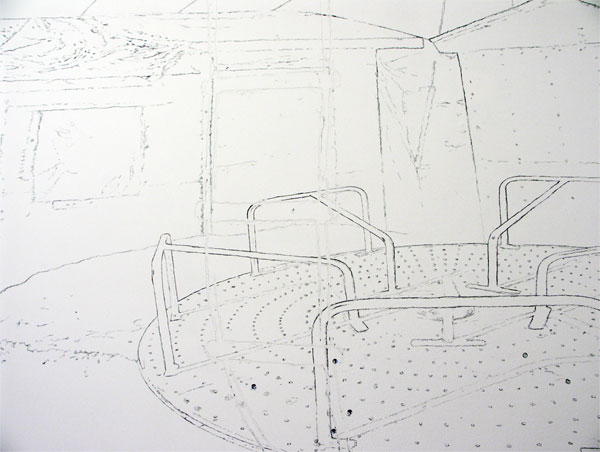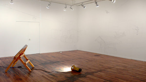 Dessins muraux, vidéo, projecteurs, semelles, pancartes, balles de ping-pong