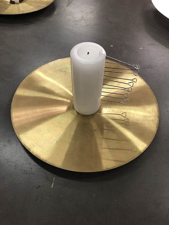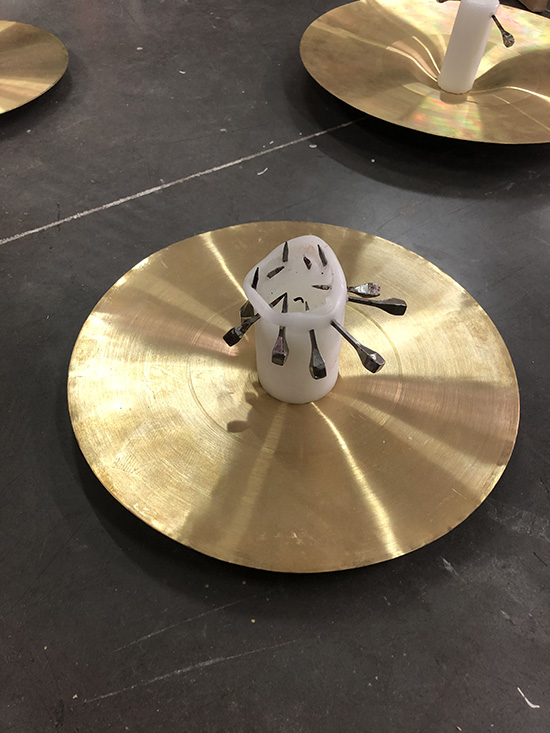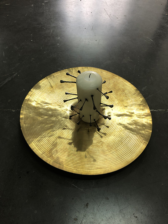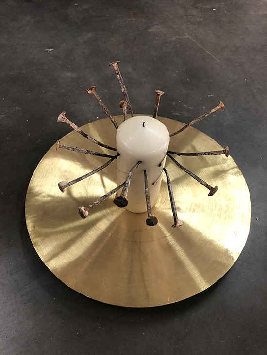 Cymbales, bougies, clous, paraffine
