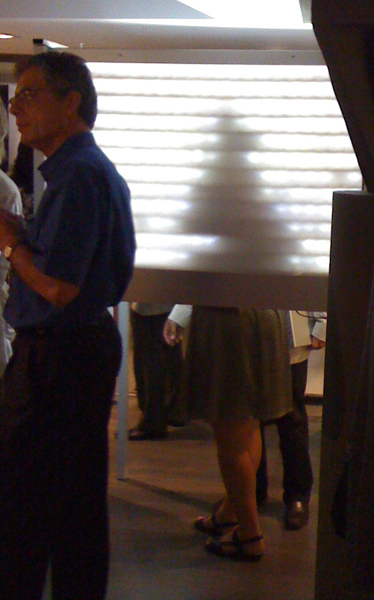 Ombre lumineuse est une pièce interactive. Lorsque le spectateur passe dans le tunnel lumineux, son ombre éteint les leds ce qui a pour effet de créer une ombre qui réagit à la lumière.