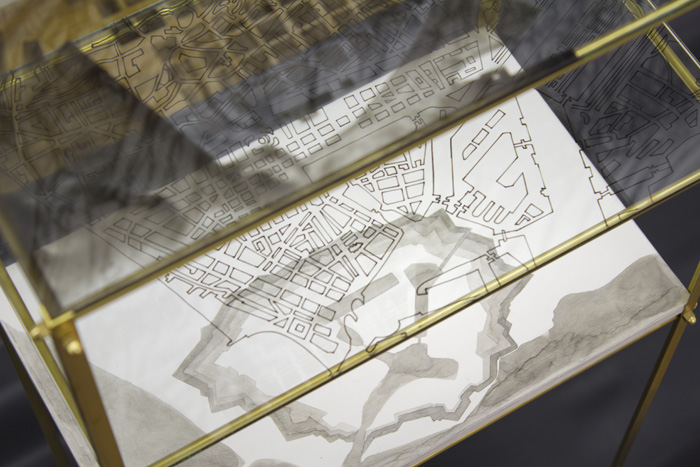 Dessiner un plan de ville c’est déterminer la nature un espace à vivre en commun. Du Havre de Vauban il ne subsite que peu. (le havre) propose de regarder, dans un jeu de superpositions, la transformation du centre de cette ville presque entièrement détruit durant la seconde guerre mondiale et dont Auguste Perret a redessiné le plan à la reconstruction. La redoute fortifiée avait déjà laissé place à une ville au réseau de rues dense et sinueux, Perret partira de la tabula rasa produite par les bombardements pour proposer un plan en grille orthogonale. La cadence régulière des îlots fabrique l’unité retrouvée d’un centre ville entré violement et par la destruction dans la modernité. |
