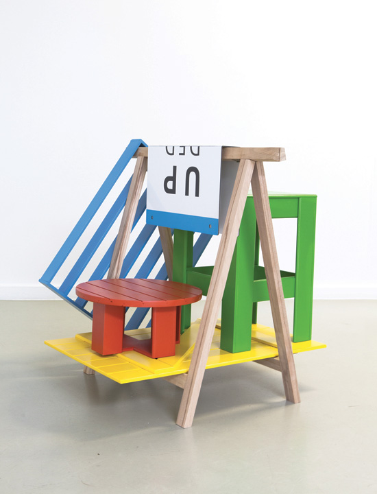 Contre-plaqué, pierres et galets, feutre, 140 x 175 x 57 cm