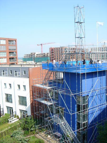 Création d’une extension éphémère pour l’immeuble de résidences d’artistes Blue House à Rotterdam.