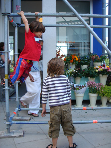Installation à base d’échafaudages permettant de requalifier l’espace privé et de créer un nouvel espace public.