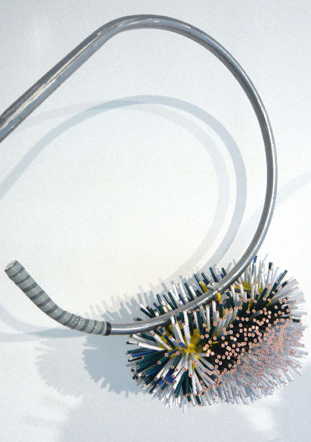 Crayons, résine polyuréthane, selle de vélo, tube métallique, trottinette, grip, dimensions variables