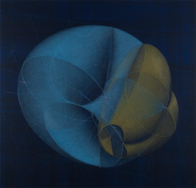 Crayons de couleurs sur papier préparé à l'acrylique, 4 x (47 x 45 cm)