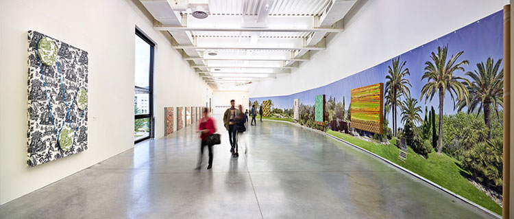 Pour Pascal Pinaud, l’exposition est un médium à part entière dont il se saisit pour produire des manières de voir et de penser l’art. Tour à tour, ses pièces peuvent être présentées dans un espace couvert de tapis, écrin de motifs qui met à l’épreuve la rhétorique décorative ; stockées dans un silo, réserve d’une collection ; ou placées dans un meuble à dessin, à consulter. Au fil du parcours, des liens se tissent entre les séries mais aussi avec les oeuvres de la collection du Frac Bretagne exposées sur un paysage déplié de Nice.