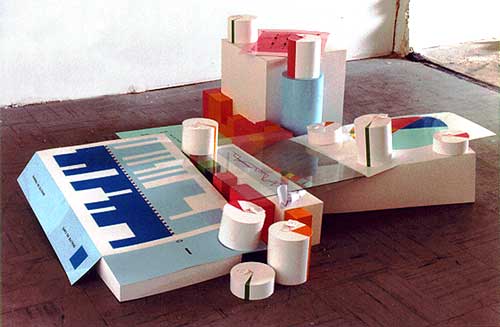 This variable geometry installation is an ensemble of volumes and collages arranged in slight disequilibrium assessing a daily enterprise carried out over one month : to scrupulously note the quality of the morning’s coffee in relation to the quality of the day’s work.