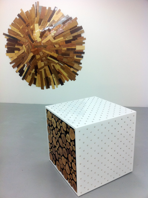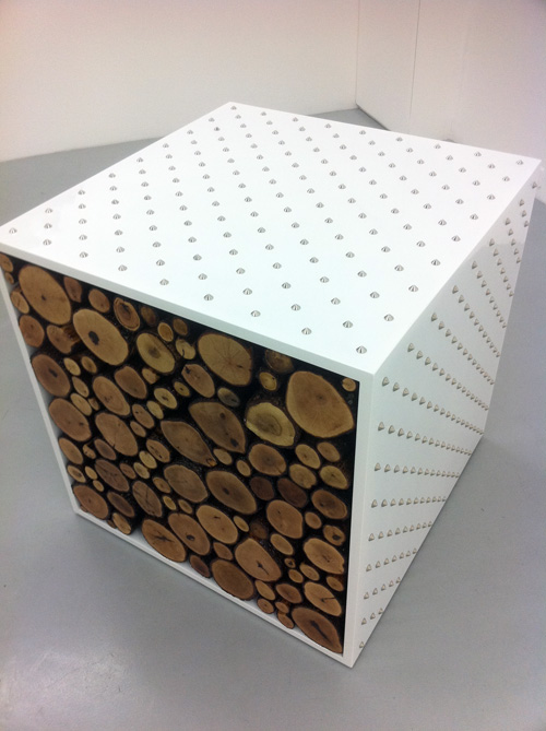 Bois (chêne), peinture, acier chromé et vernis, 75 x 75 x 75 cm