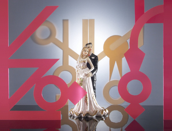 La mise à l'échelle un du dispositif, procède de la même manière : à partir du choix fait dans le catalogue de signes, les protagonistes se mettent en scène, s'intercalent et incarnent les mariés dans ce décor donné.