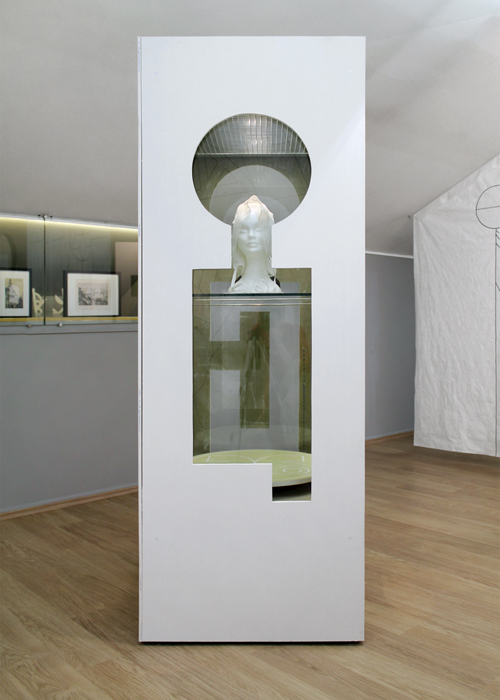 La conception de cet espace doit beaucoup à Kurt Schwitters et à cette construction perpétuelle au gré de l’exil que fut le Merzbau, tel que les seules photos qu’il en reste et les témoignages nous le rendent imaginable : L’œuvre, « inachevée par principe », après avoir envahi la presque intégralité de l’espace domestique, ne cessait de se renouveler. En plus de cet assemblage architectural, Kurt Schwitters avait intégré aux cavités de sa structure des sortes de petits mausolées, des grottes qui avaient pour but d’héberger des scénographies diverses organisées autour de fétiches. Ces saynètes n’avaient pas pour vocation d’être conservées, mais bien au contraire, enfouies et avalées par le processus. Couche par couche, Kurt Schwitters venait nourrir les murs de reliques, refermant sur elles une nouvelle strate qu’il appelait « passer […] sur le cadavre de l’objet ». Le Merzbau fonctionnait incontestablement comme un journal intime. Il était devenu le tombeau d’une vie, telle une pyramide où sont ensevelis quelques trésors du passé, embaumés et conservés à l’épreuve du temps. Les murs étaient devenus des palimpsestes et la structure une mémoire. 2