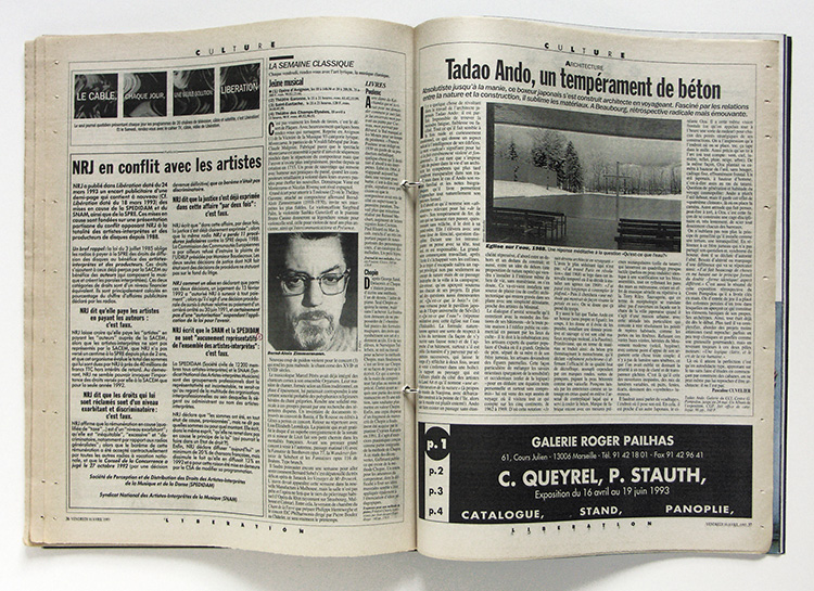 Ce catalogue réunit les différents journaux dans lesquels sont parues ses pages : Libération, vendredi 16 avril 1993 ; Le Jardin des Modes n° 169, mai 1993 ; Galerie Magazine, n° 54, avril-mai 1993 ; ainsi que le carton dinvitation de la galerie.
