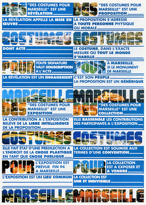 Vue de l'exposition Des costumes pour Marseille, Frac Paca, Marseille, 1995 |