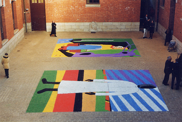 Craie sur sol pavé, 5 x 7 m chacune