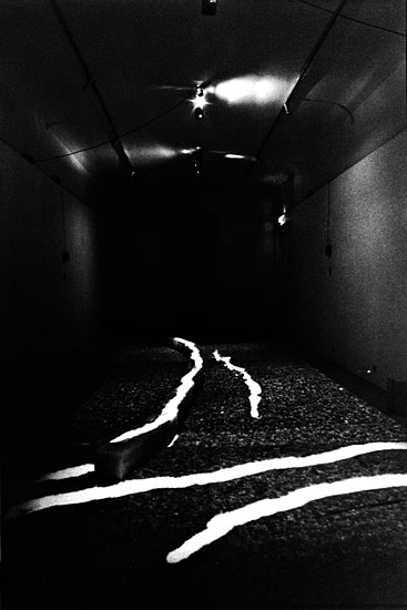 Gros sel, paraffine, 8 haut-parleurs, 8 mirroirs, 3 projecteurs diapos,