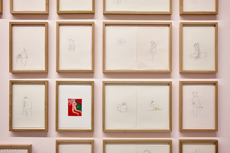 L’exposition intitulée Juste un peu distraite présentée au plateau expérimental du Frac révèle au public pour la première fois un corpus de dessins tout à fait inédit, pourrais-tu nous dire comment est née cette rencontre avec le dessin et quelle est la genèse de cette exposition ? Comment s'est imposé le principe d'un rendez vous quotidien, d’un rituel matinal avec le dessin ? Est-ce de l'ordre d'un désir, d’une distraction comme le titre de l'exposition le laisserait supposer, d’une addiction ou d'une nécessité ?