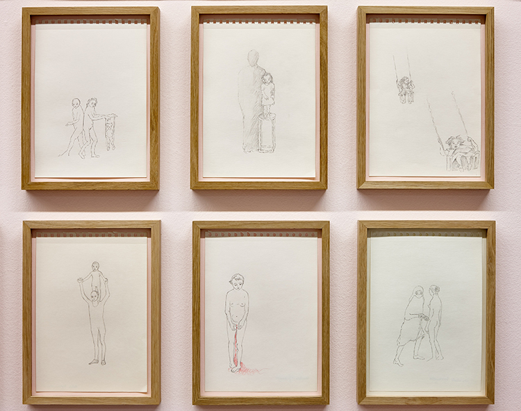 Qu'est-ce que cette pratique du dessin t’apprend aujourd'hui sur ton travail photographique et vidéo ? On retrouve dans cette production de dessins tirés de petits carnets et réalisés au crayon noir, parfois légèrement rehaussée de couleurs, des thèmes récurrents qui traversent et fondent l'origine même de ta démarche artistique, les questions de filiation, de généalogie, de gémellité, de genre, de sexualité, de rapport entre l'homme et l'animal, l'expression de pulsions plus ou moins contenues. On ne ressort pas indemne de cette confrontation avec tes dessins, entre rêves, traumas et fantasmes avoués ou inachevés. Comment les interprètes-tu aujourd'hui après plusieurs centaines de dessins réalisés ? Sont-ils les éléments d'un vaste puzzle qui se découvre au fur et à mesure de leur apparition ?