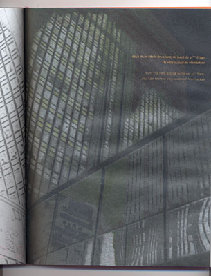 The transparent images placed on the glass pane allow one to perceive superimposed images of the city, buildings, the facades of skyscrapers, the sea. Scale is inverted; when the light changes, so too does the image. It becomes an animated still image.