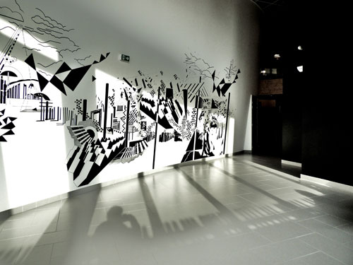 La fresque et les cocottes Ce projet s'inscrit comme une suite logique de mes recherches de dessin vers la 3D avec une intention et une volonté d'observer, de saisir et de retranscrire dans mes lignes, l'espace, l'histoire, la vie, « l'âme » du lieu.
