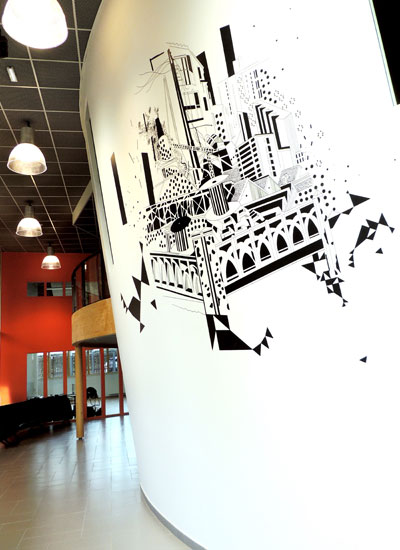 L'IFMTS : Au pied de la Maison radieuse du Corbusier, le caractère « pluriel », ou plus précisément cette dimension multi-facette de l'apprentissage envisagé par l'IFMTS est la mise en oeuvre d'un enseignement pluridisciplinaire précieux. L'idée d'accompagner les étudiants de cet établissement dans le quotidien de leur parcours par le biais de fresques et de sculptures est une fantastique optique.